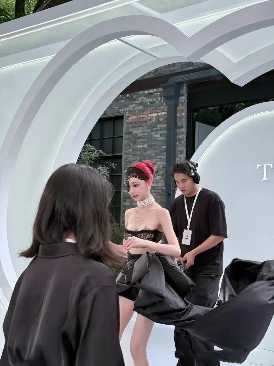 一出場的時候,易夢玲就被圍着拍照。只是這種大膽前衛的造型,雖然足夠抓眼球,但總給人一種端莊不足的感覺。