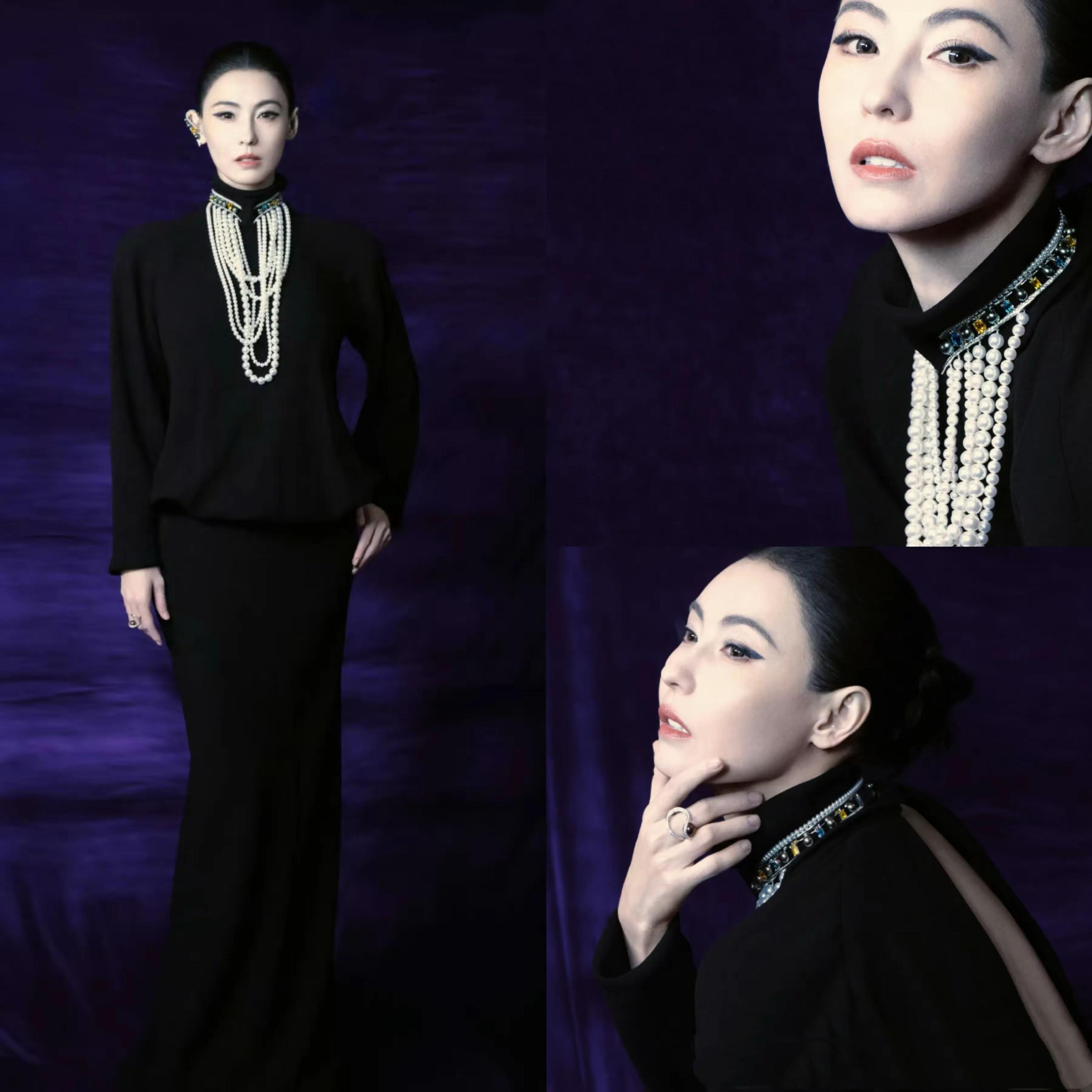 郭曉婷32歲了,她的氣場更強一點,眼神有點冷咧、帶着一股狠勁。這種黑色禮服就特別適合她,端莊大氣、氣質也更沉穩。