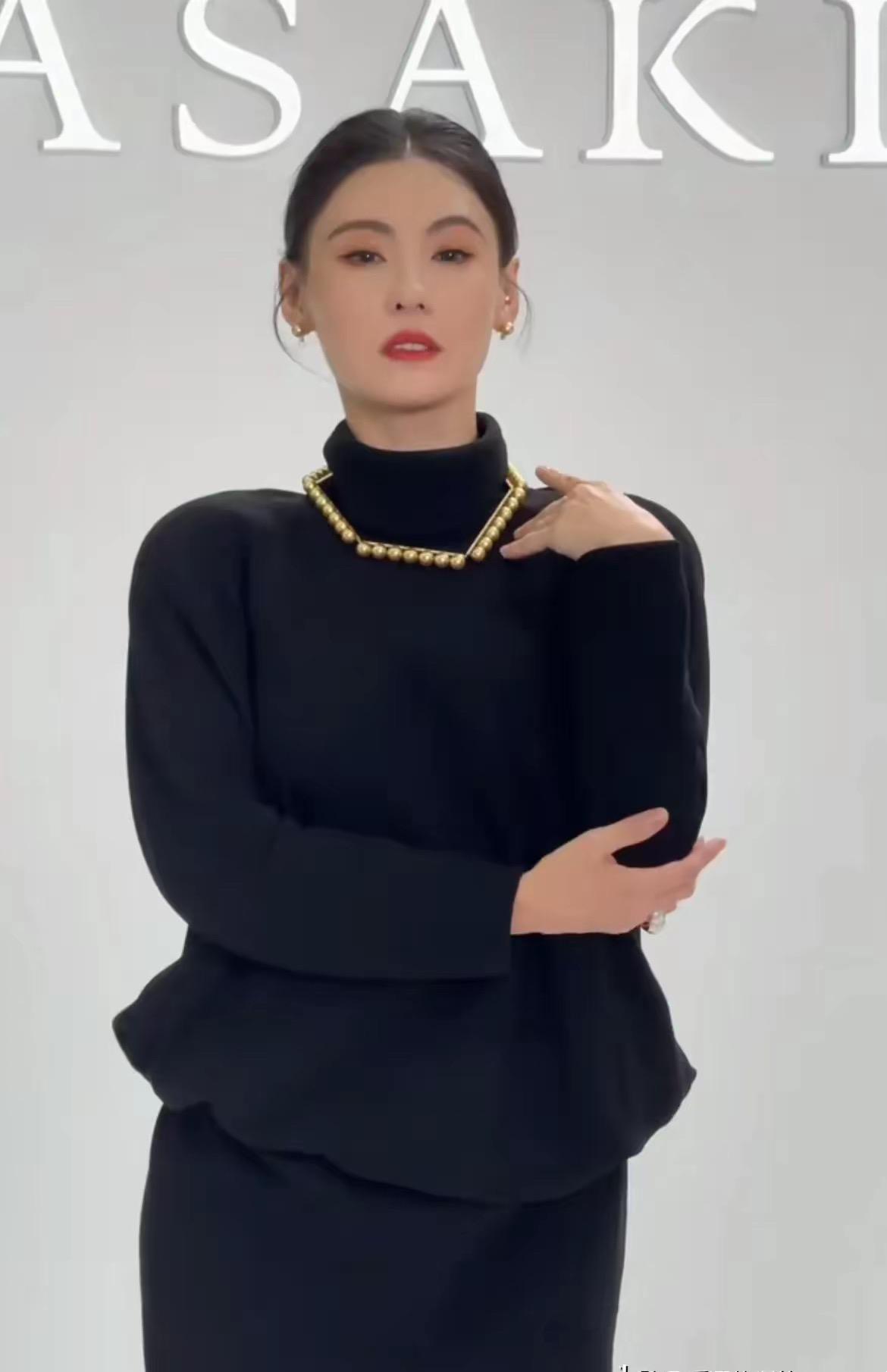 被45歲張柏芝驚豔到,一襲黑裙“全裹緊”,頂級骨相比小女生耐看