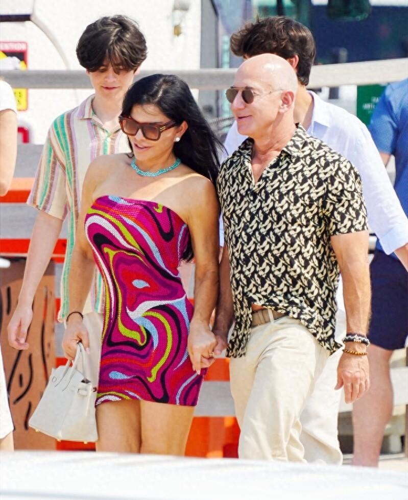 這場從地下情走向高調婚禮的愛情,耗資 5000 萬美元的威尼斯盛典不過是序章 —— 半個月後,這對新人以更惹眼的姿態霸佔頭條:貝索斯留着胡茬塑造 “科技界範・迪塞爾” 的硬漢形象,桑切斯則以一襲野性吊帶裙,將 “金錢與爭議” 的劇本演繹得淋漓盡致。他們的故事,恰如桑切斯的穿搭,在批評與豔羨的目光中,活成了獨樹一幟的風景。