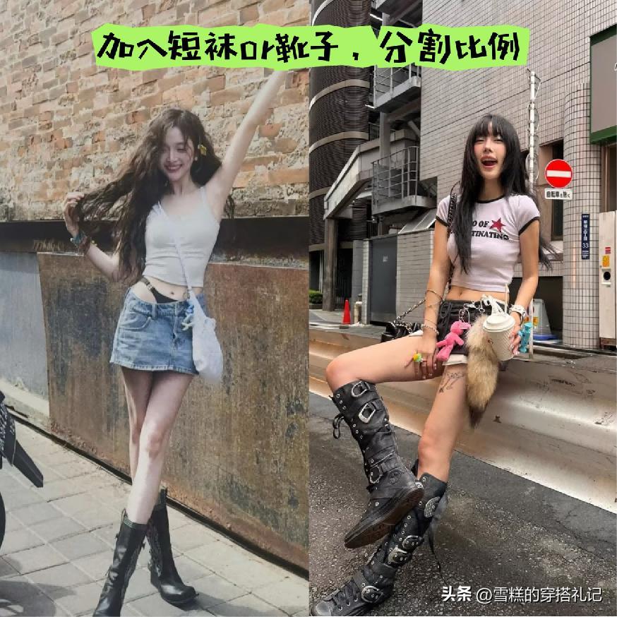 ❸ 若是低腰短裙、褲↣加入短襪+厚底鞋