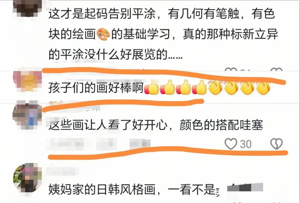 網友都在誇,孩子們畫的好棒、這些畫讓人看了好開心,顏色的搭配很哇塞之類的。雖然大家並不是專業的,但玥兒姐弟的話確實看了讓人很舒服。相對於姨媽家的風格,不知道搶了多少倍。