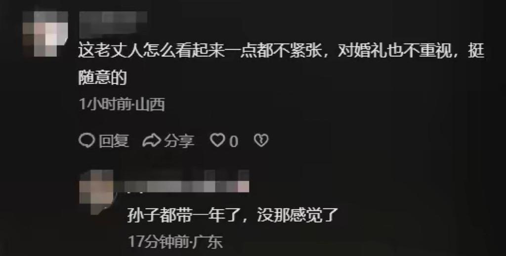 即便如此,這場補辦的婚禮還是有很多細節被吐槽。最重要的就是親爹親媽的表現,女兒婚禮金龜子穿了一件大褲衩子就上來了,這不能說是鬆弛、只能說是太隨意了吧。