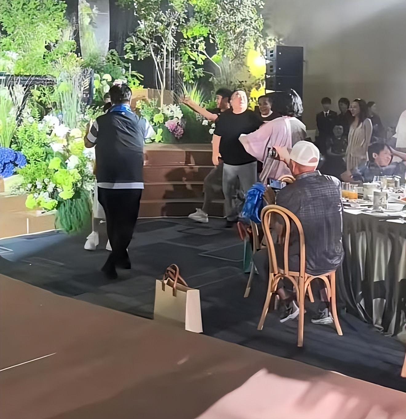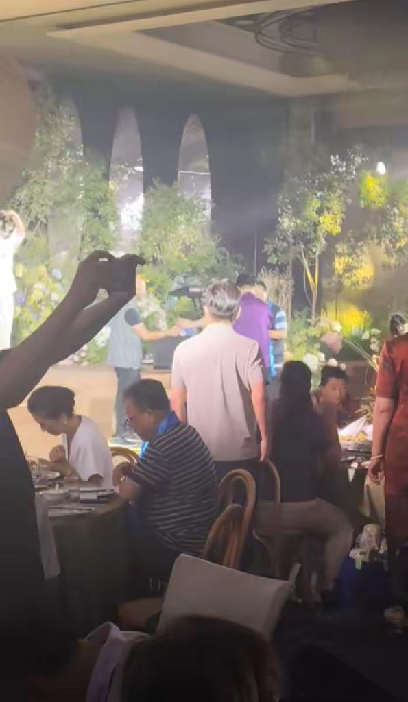 其實娃娃的婚禮很簡單,並沒有大操大辦,傳出來的照片也有點模糊。客人們的穿着都很隨意,大都穿着寬鬆的T恤,坐在桌邊聊天、玩手機,沒多少人注意臺上的畫面。
