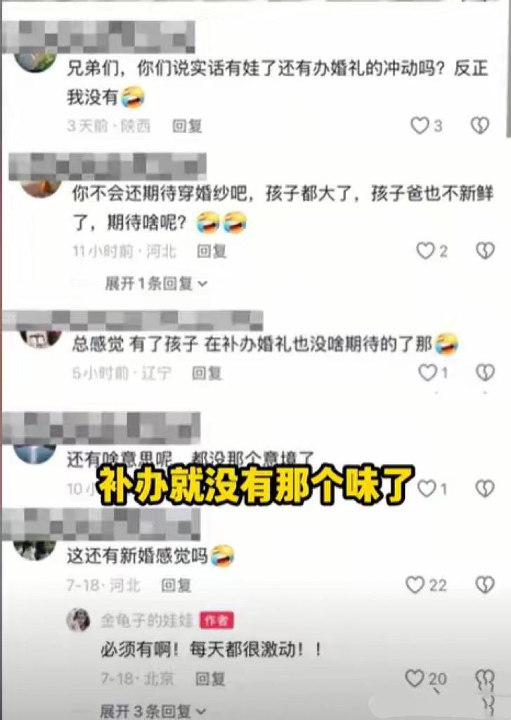 大概這就是爲什麼網友都說補辦婚禮沒有意義了吧,除了女生自己想要補辦,沒有任何一個人想要走着程序,哪怕是自己的父母。