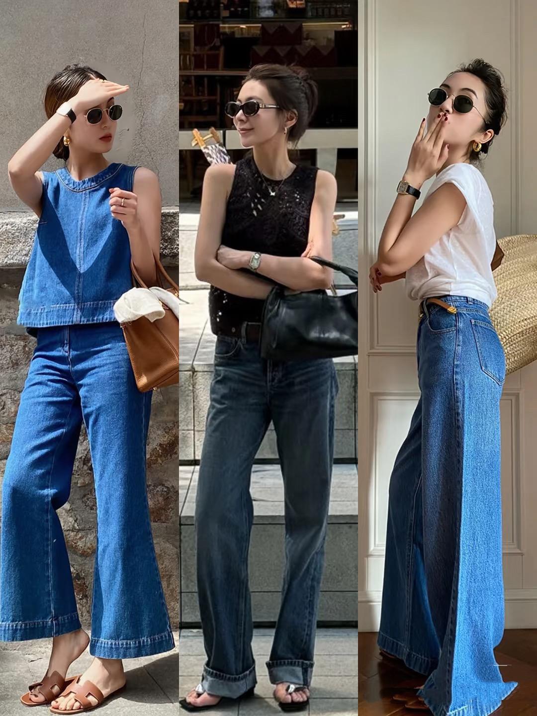寬鬆的無袖上衣,配上高腰的牛仔褲,就有一種很大方清新的美。適合手臂比較細長、皮膚相對白皙的女生。