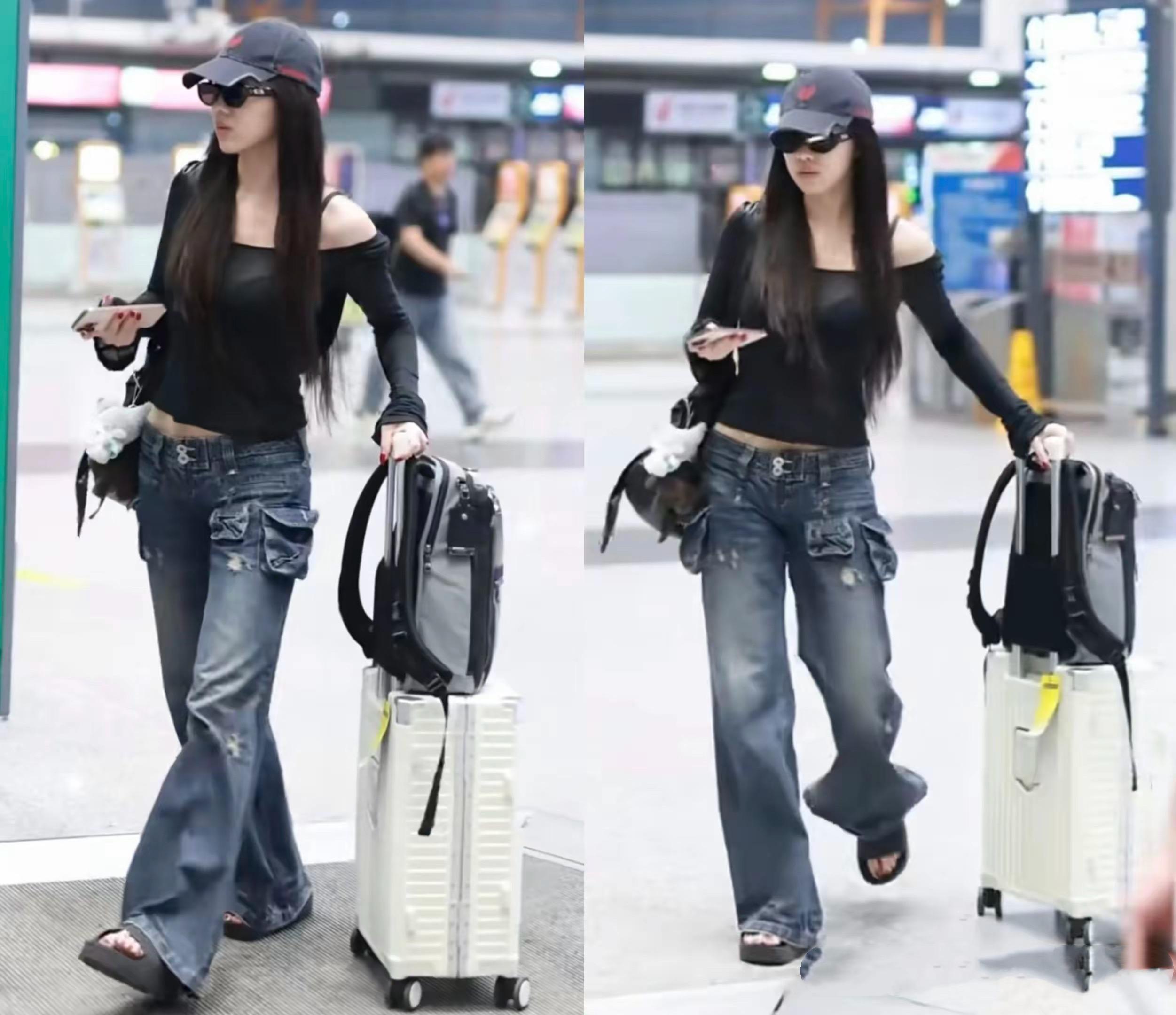 小蘋果出國留學後,穿搭也更洋氣了。她的媽媽葛薈婕是超模,自己身材也很棒,穿着露肩的上衣、低腰的闊腿牛仔褲,顯身材又超颯。