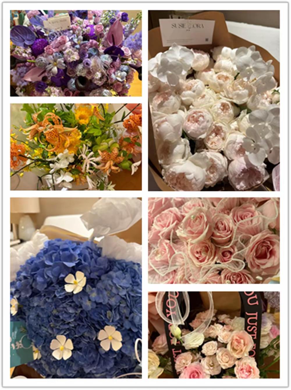 同時也有很多朋友送了好看的花束,王曉晨喜歡花、過生日的時候朋友就會送她鮮花,這份祝福也特別美好。