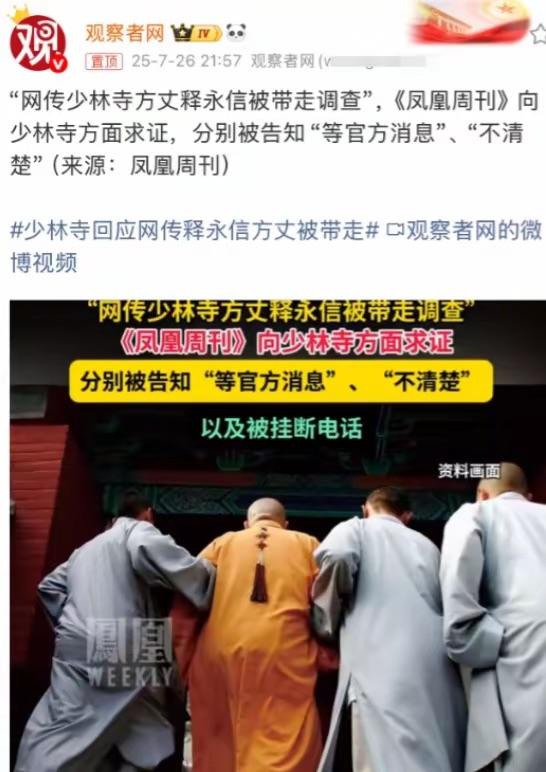 先是釋永信的社交平臺停更,讓網友們發現了不尋常,接着就被曝出釋永信被帶走調查的消息。