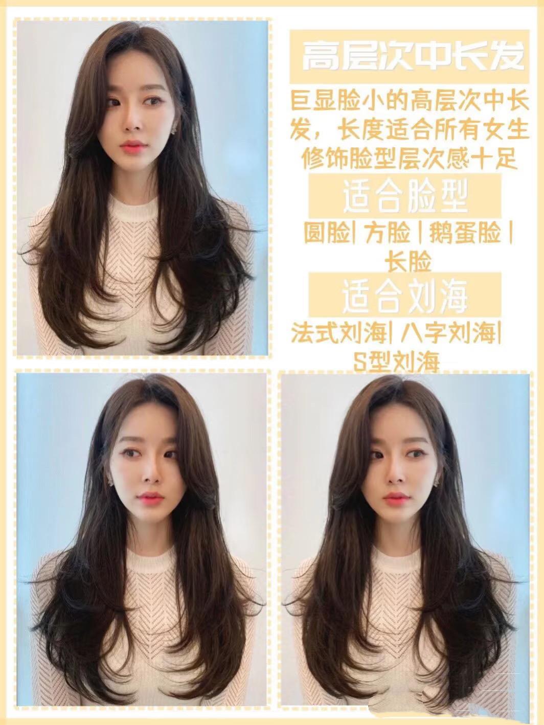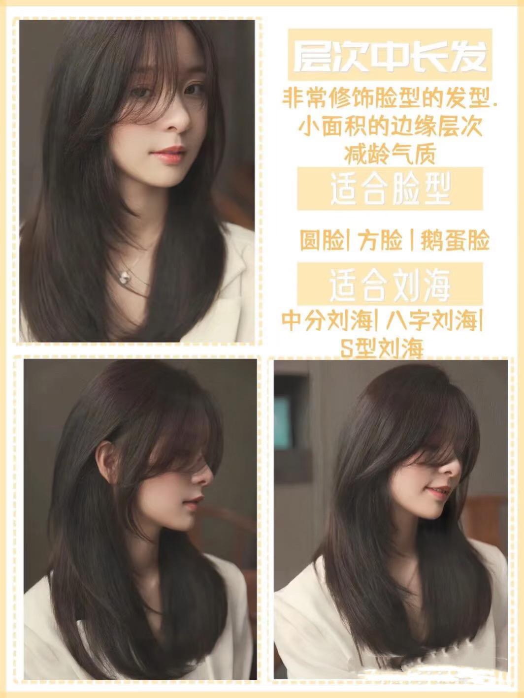 高層次中長髮,髮尾內扣、配上八字劉海,或者S形劉海,都特別顯氣質。