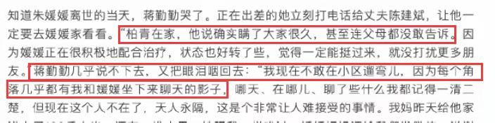 生前有很多好友,對朱媛媛的去世都心懷嘆息。在蔣勤勤接受採訪的時候,她回憶起和朱媛媛相處的點點滴滴,直接哭到哽咽。