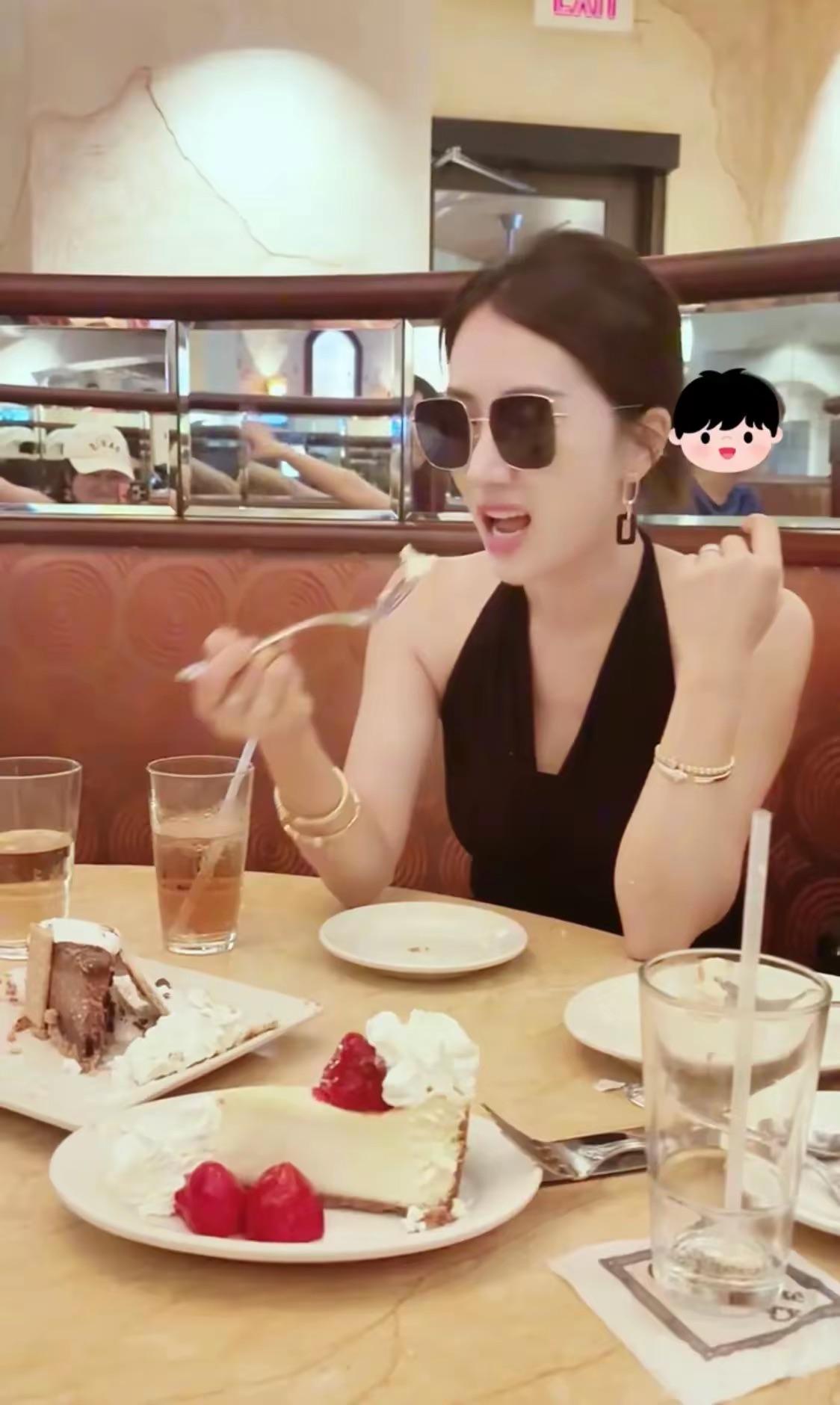 李念喫飯的時候,還戴上了墨鏡,非常有摩登女郎的氣質。她點了飲料、小蛋糕,悠閒地享受下午茶時光。