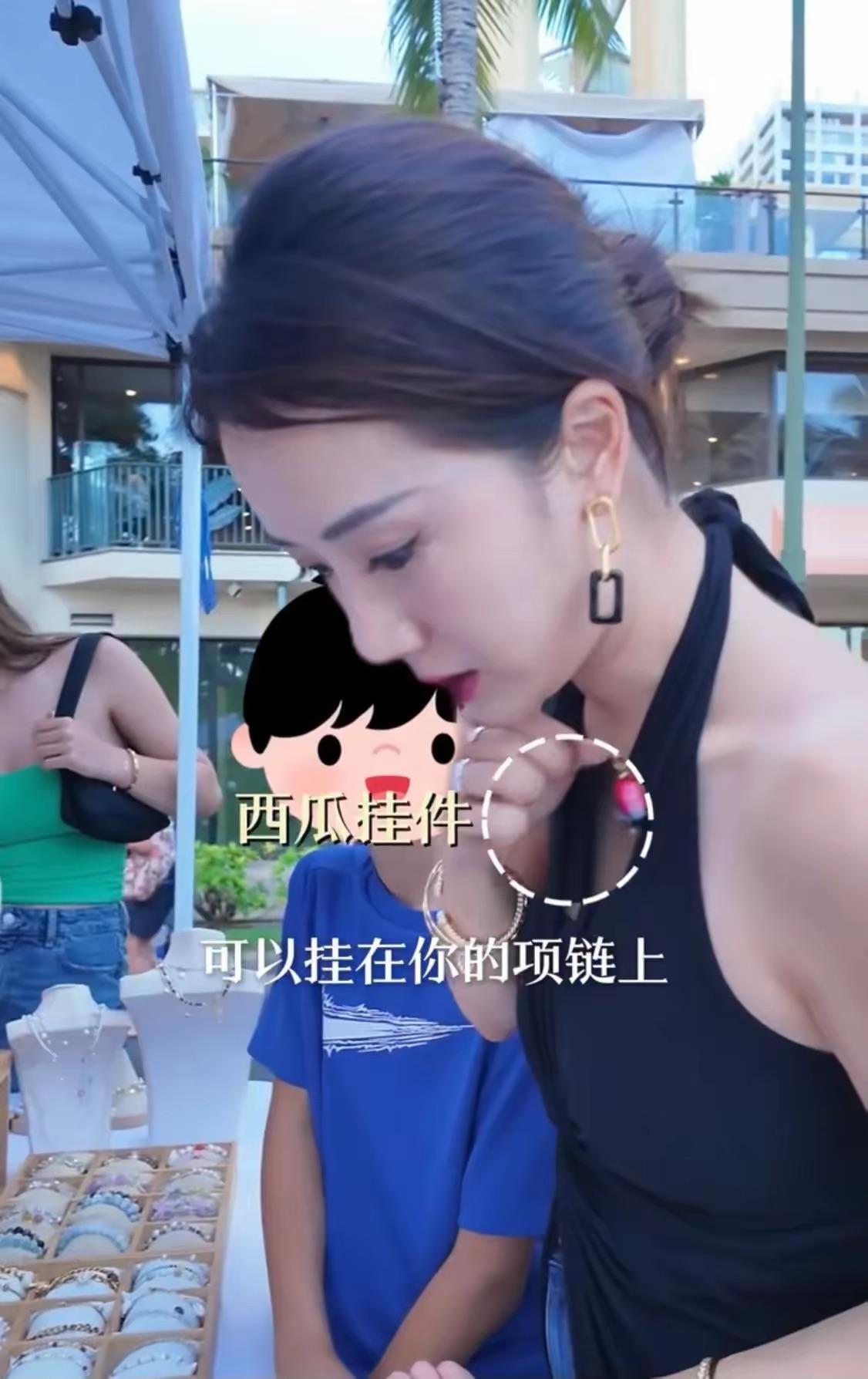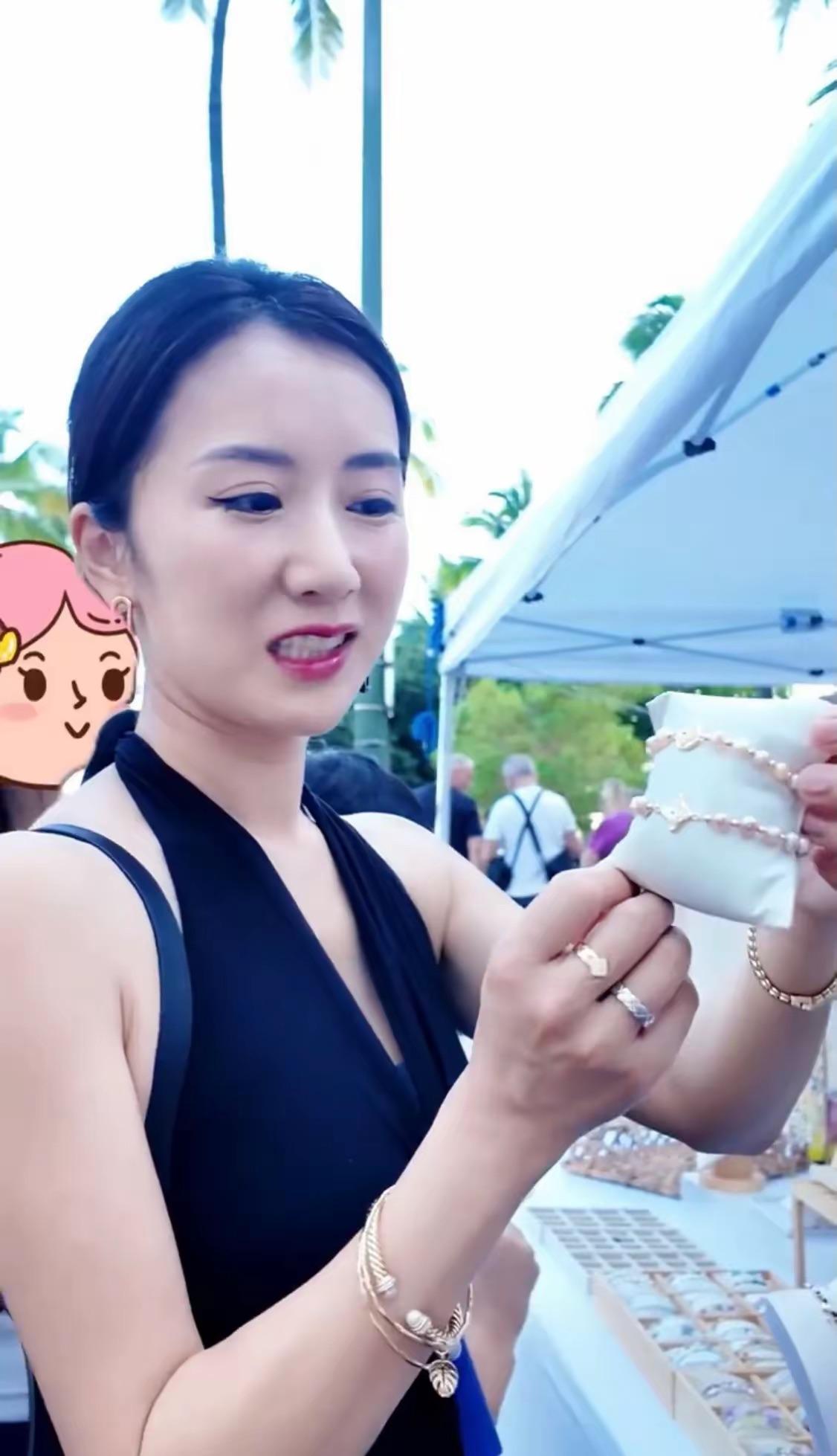 他們逛的市集也非常有趣,有很多賣小飾品的攤位,李念認真的挑選着自己喜歡的小配件。她穿了一條黑色的露背連衣裙,掛脖的款式非常洋氣惹眼。