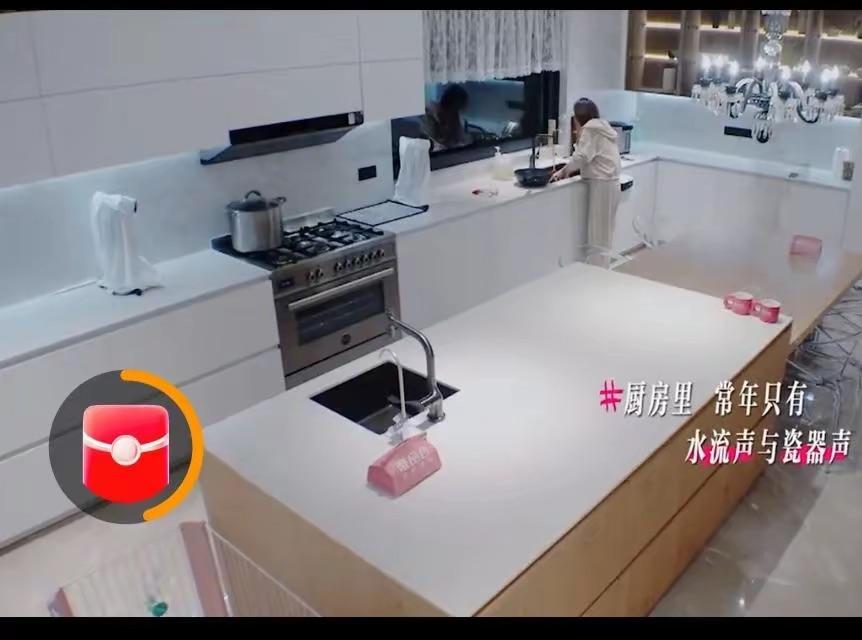 王琳一個人住在大別墅了,她的家非常大。單單是一個廚房,看着就比別人家的客廳還要大。王琳家裏大面積都是白色的,白色的櫥櫃、檯面,看着非常清爽、是窗明几淨的感覺。