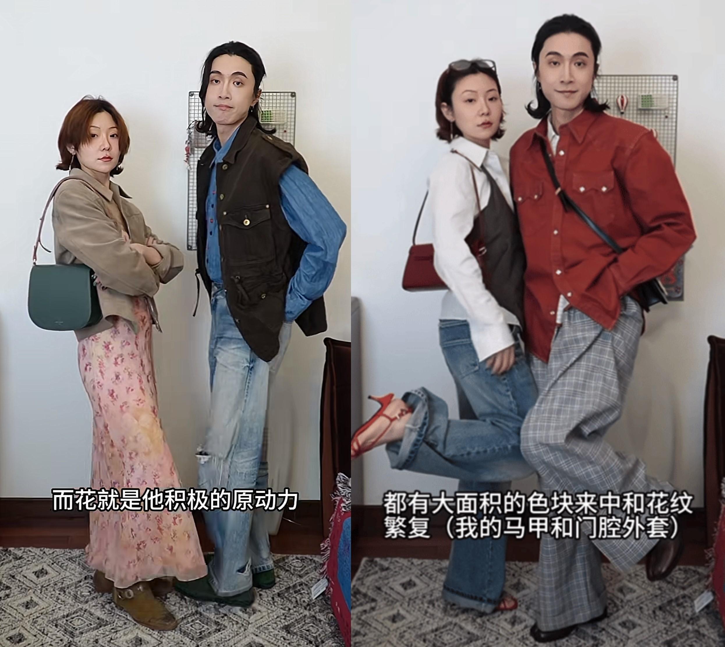 “原來風格和生活,不需要太正經。”@小程不煩 會把把穿搭和vlog融合在一起,“用穿搭講悄悄話的情侶穿搭”那期視頻,她和男友用對鏡拍的方式,拆解自己的ootd和搭配思路,“柔軟碎花裙和硬朗牛仔,很像男人和女人的骨骼,搭配在一起繁而不亂。”沒有誇張pose和複雜技巧,但看她就有一種自己也在照鏡子的感覺!