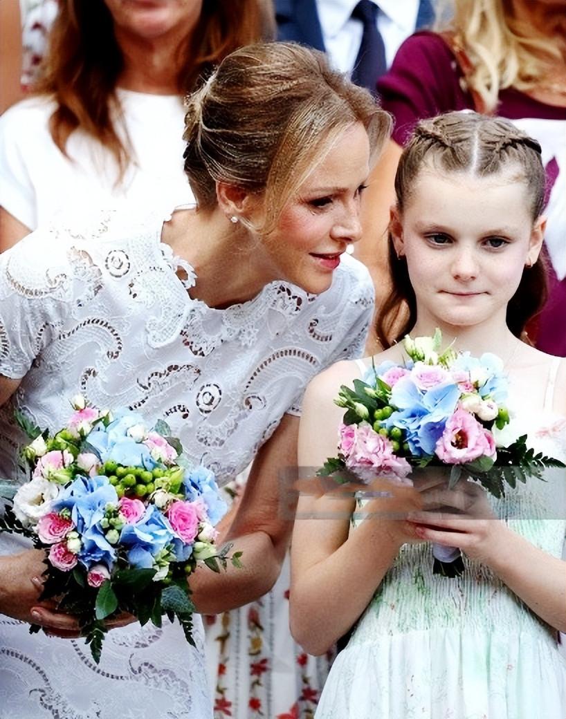 而她爲女兒加布裏埃拉挑選的 DIOR 綠色吊帶裙,與自己的白色蕾絲裙形成 “冷暖對比”,母女同框時既和諧又各有特色,恰如摩納哥女性的色彩哲學:“色彩不是用來炫耀的,而是用來表達情緒與身份的。”