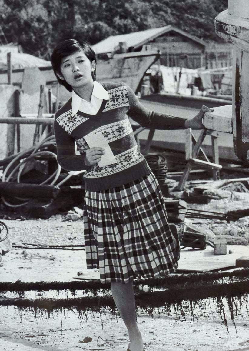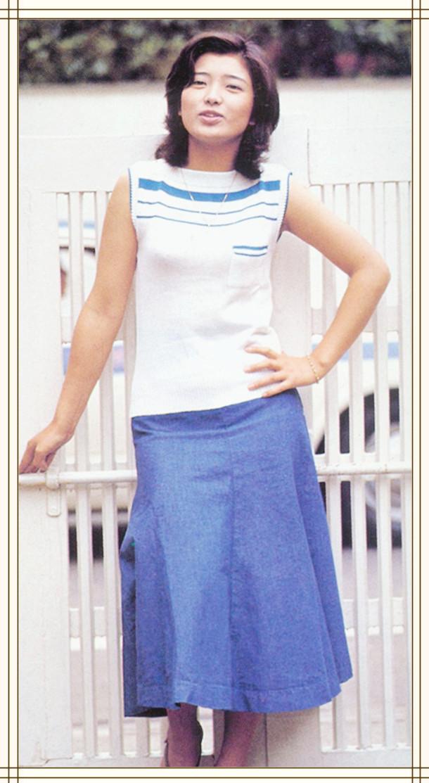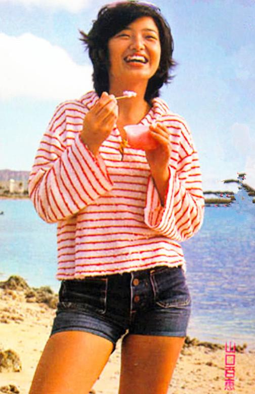 1970 年代的山口百惠,用條紋詮釋着 "清水出芙蓉" 的美: