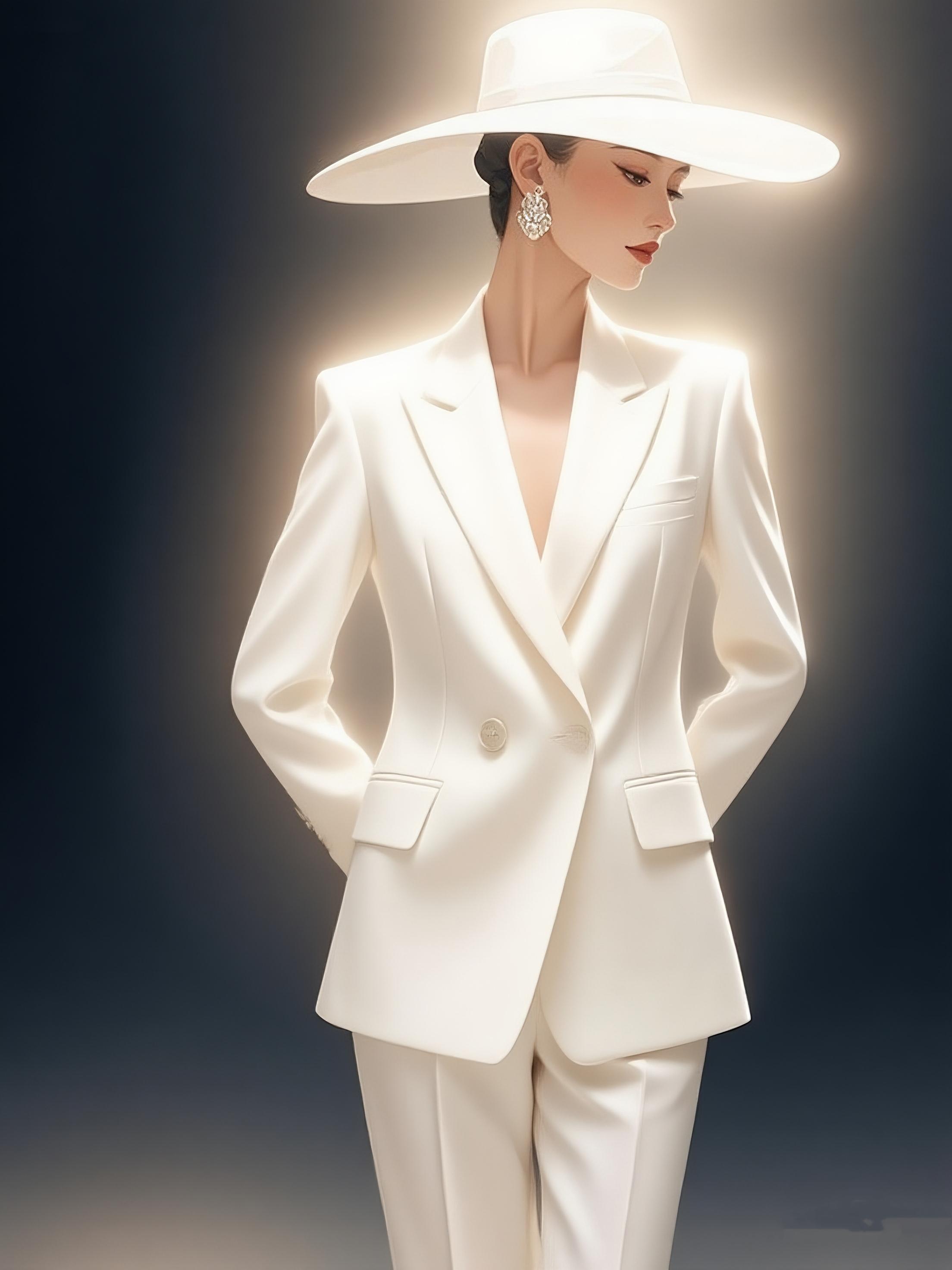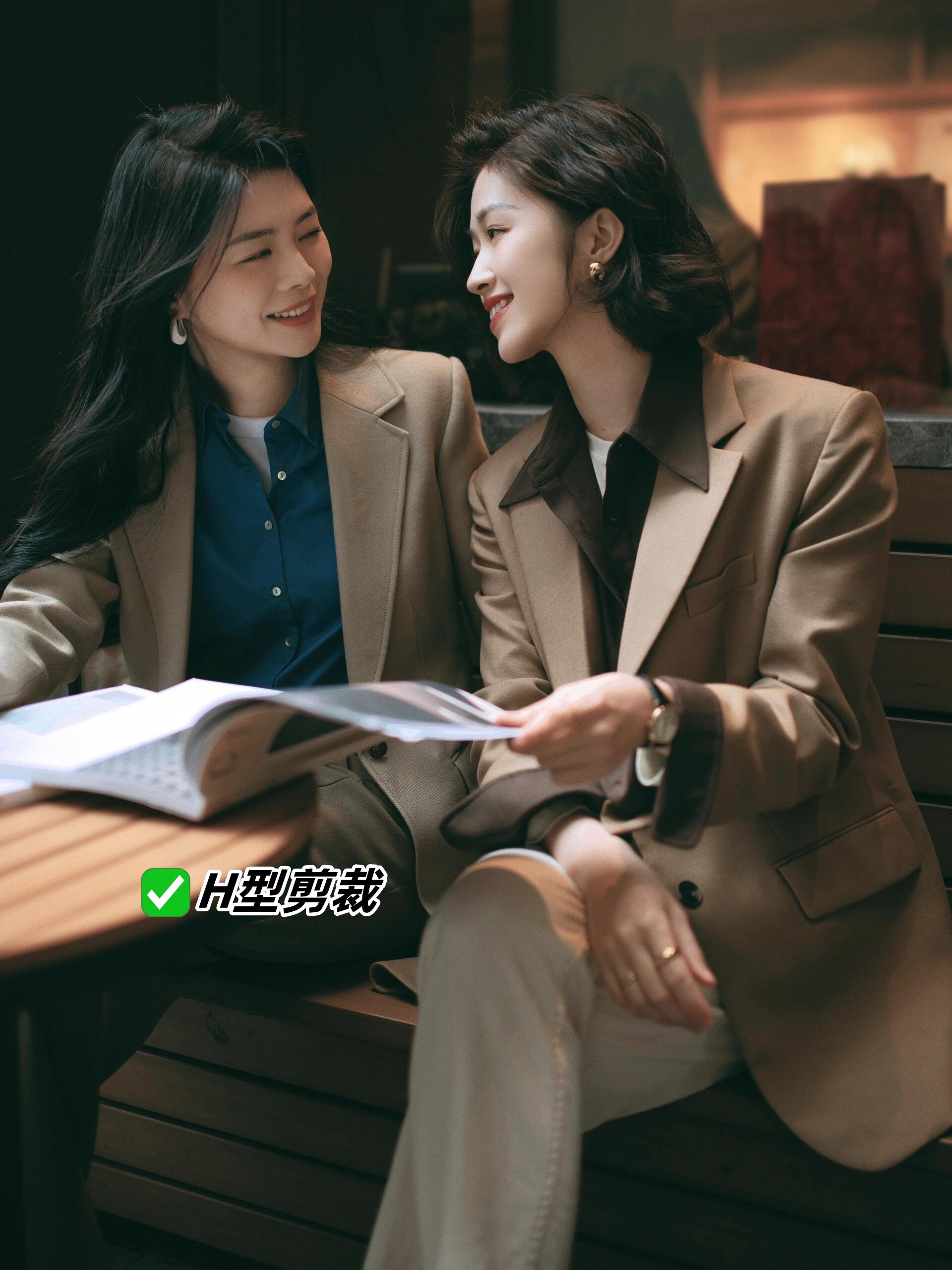 H 版型西裝線條簡潔流暢,從肩部到下襬呈直線型,就像字母 “H”。它不強調腰部曲線,整體給人一種幹練、利落的感覺,簡直是職場人的標配!這種版型能夠很好地修飾身形,讓身材比例看起來更加筆直修長。對於職場女性來說,H 版型西裝搭配襯衫和直筒褲,再配上一雙高跟鞋,妥妥的 “職場大女主” 既視感,YYDS!