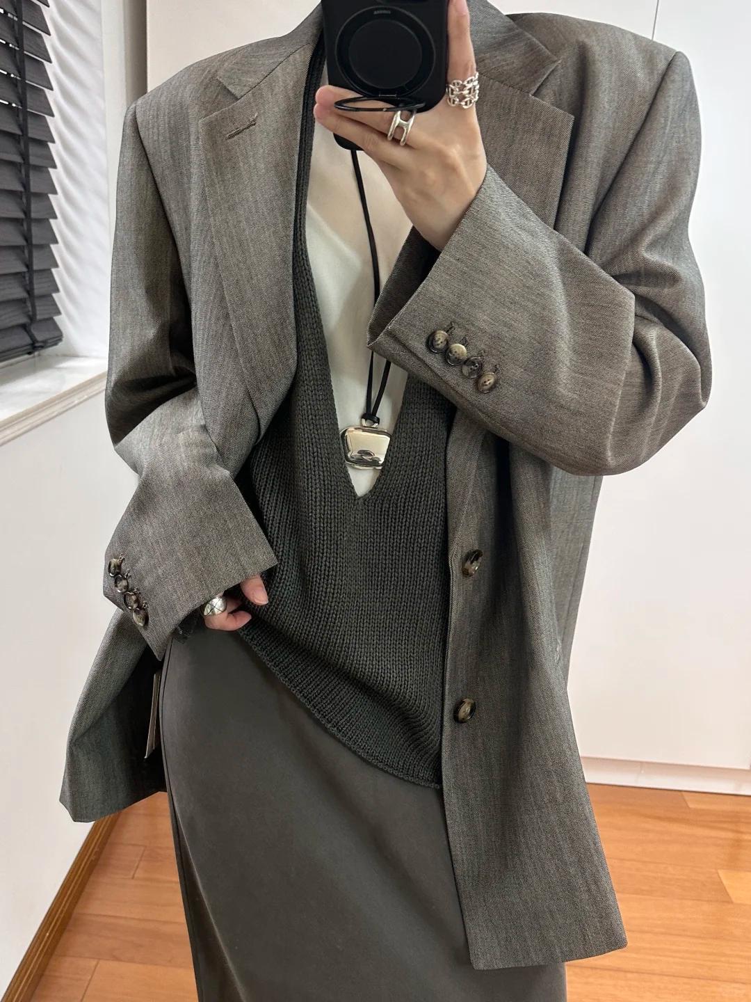 顏色上,除了經典色系,還會融入一些柔和的低飽和度色彩,如莫蘭迪色系中的豆沙粉、霧霾藍等,既保留了通勤裝的穩重感,又增添了一絲溫柔與時尚氣息。這種輕熟風簡約設計的西裝,無論是搭配簡約的基礎款內搭,還是時尚感強的個性單品,都能輕鬆打造出精緻的通勤造型。