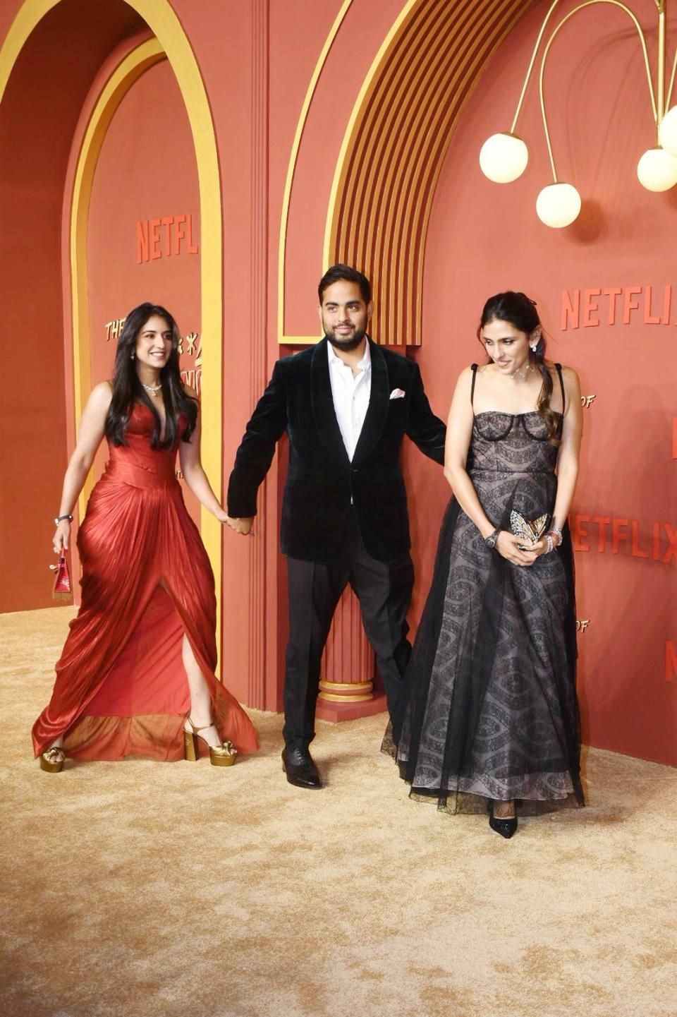印度首富小兒媳亮相,一襲紅裙高開叉太敢穿,哥哥全程牽手惹爭議