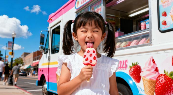 她可以在陽光下開心地喫,然後告訴我:“媽媽,我下週還想試試巧克力味的!”
