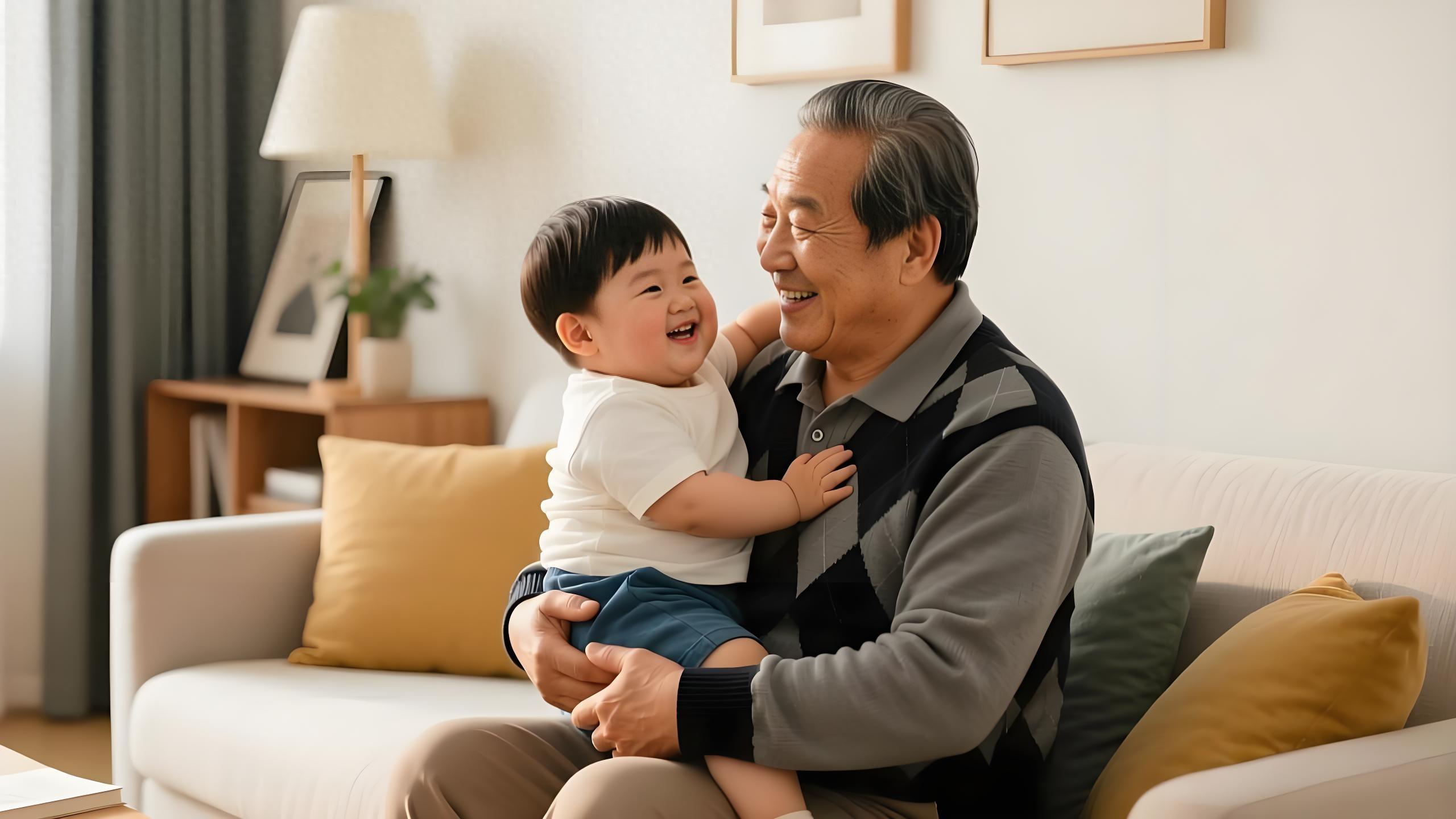 爺爺整天抱着不肯撒手,一口一個“大胖小子有福氣”、“頭大腦足,將來肯定聰明”。