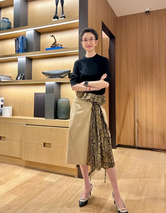 作爲一位50歲的女性,穿搭配色上也是需謹慎一點,不需要追求過分豔麗的色調,反而低飽和度,乾淨的配色更能凸顯出個人的氣質,同時又提亮膚色。