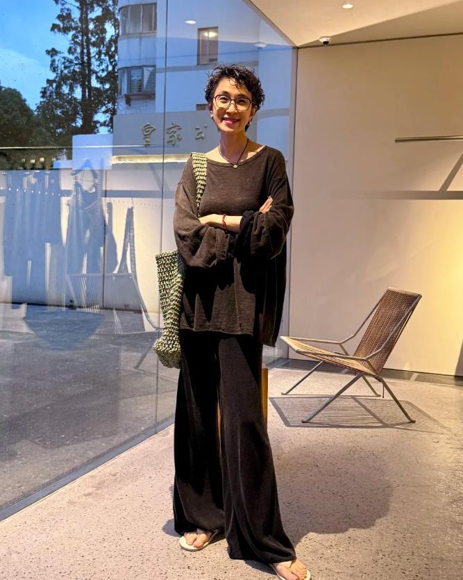 50歲的女人,哪怕長相再普通,也要懂得利用穿搭加分,就拿這位韓國博主來說,我覺得她的打扮就很值得借鑑。整體的風格是偏慵懶隨性的,上衣是深棕色的寬鬆款,面料看着就很柔軟且不失質感,下身搭配黑色開衩闊腿褲,垂墜感極佳的面料,讓整體造型多了幾分飄逸,開衩細節,注入了靈動與個性,配飾方面,她利用了草編包,多了幾分自然質樸,與整體休閒感很契合。
