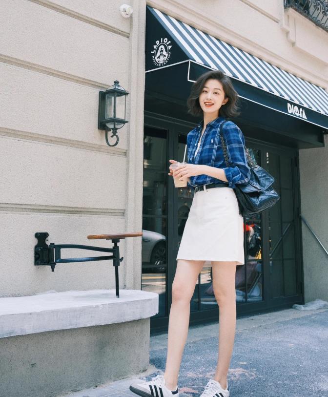 趁着假期的休閒時刻,約上一兩個好友去街頭咖啡廳打卡相聚,談談人生理想,藍白格紋的襯衫,經典中又不失復古的氣息,選擇米白色牛仔半裙搭配,真的意外好看。黑色腰帶的點綴,利落又修飾了身材,黑色包包和黑白拼色運動鞋,讓整體穿搭看起來充滿活力,很率性又時髦的格調。