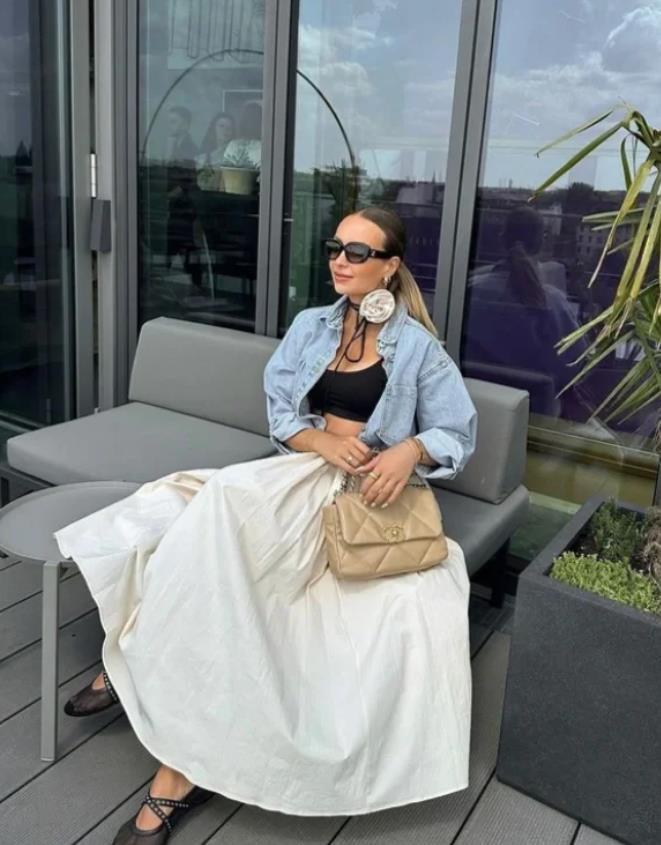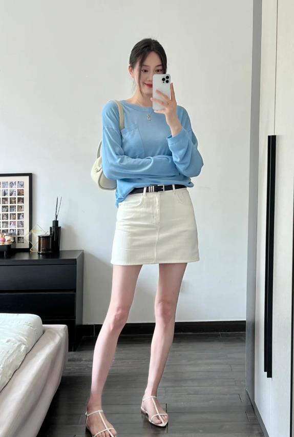 當然了,長款的白色半裙小個子也能穿,只要利用起“上短下長”的搭配原則,就能優化整個身材比例,在視覺上呈現出高挑感。但不管是短款的白色半裙,還是長款的,根據自己的喜好和身材去決定就可以。