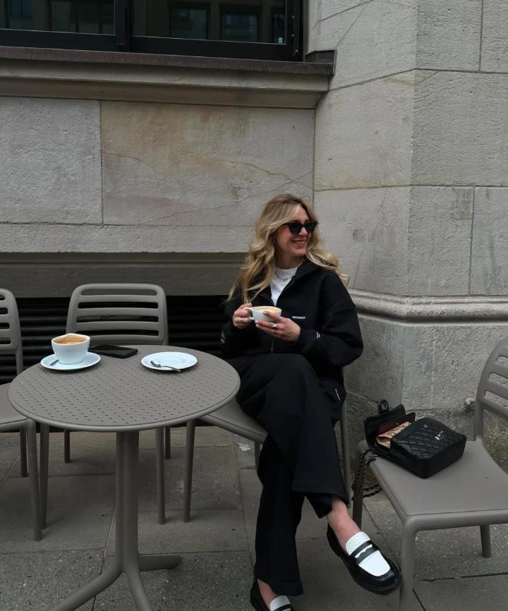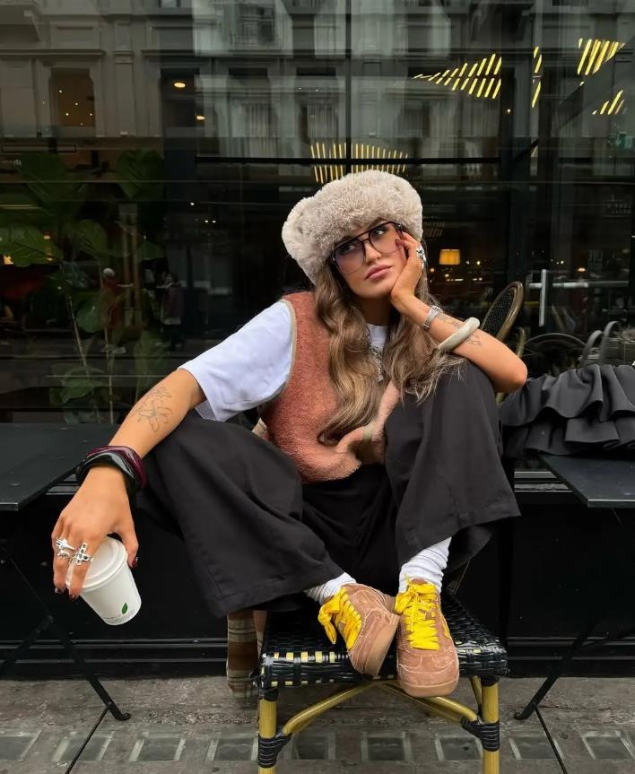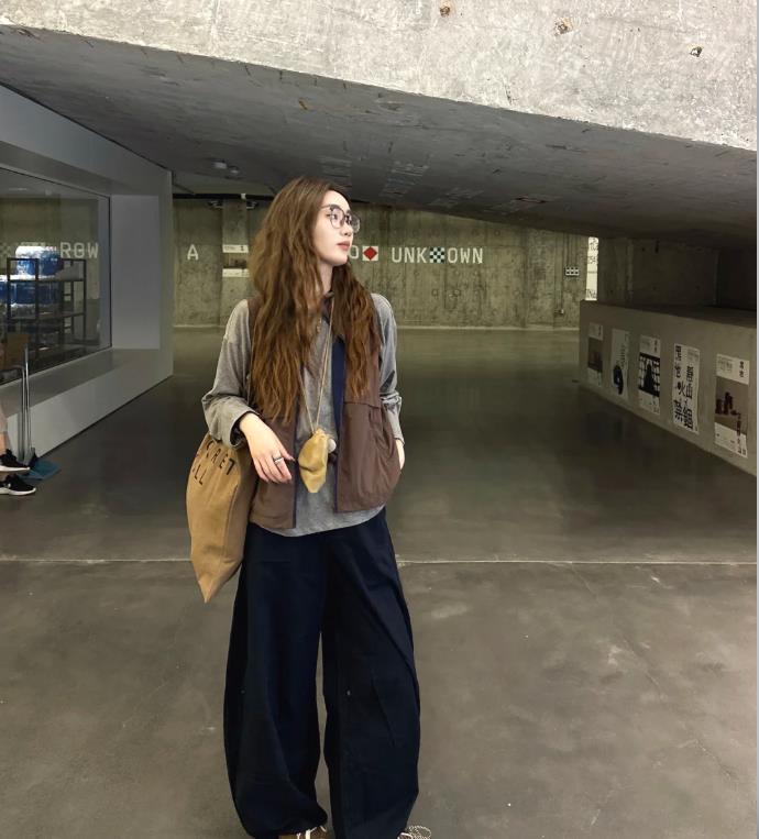 這個秋天,把糖炒栗子色穿上身吧,像這種帶着氛圍感的色調,不需要大面積運用,你只需一件馬甲就好,裏面疊穿淺灰的打底衫,真的配一臉,藏藍色的寬鬆闊腿褲,沒有黑色顯得那麼沉悶,卻足夠讓你穿出瘦身的效果,棕色的鞋子和包包,都巧妙提升了穿搭的時髦度。