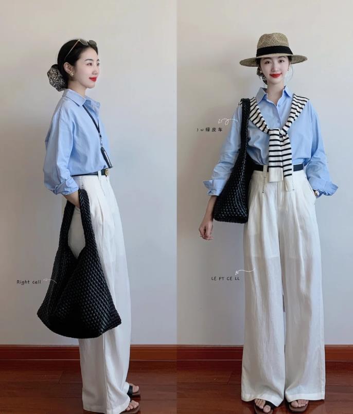 真的是太喜歡在秋天這個微涼的季節穿襯衫了,淺淺的藍色襯衫,不要覺得自己駕馭不了,或者是穿出過於正式的感覺。只要你懂得利用起配飾點綴,以及注意下一些小細節,就能將其穿出時髦感。比如搭配披肩,還有白色的闊腿褲,簡單清爽還不失氣質。