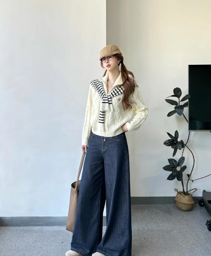 乾乾淨淨的穿搭,無論在什麼時候都很惹人喜歡呢,奶白色的針織開衫,軟軟糯糯的很舒服,小開衫的版型,也可以拿來當作外套穿,單穿也不扎身,簡單搭配一條水洗牛仔闊腿褲,整體的風格就很簡約慵懶,上短下長的組合,更是適合個矮的女生們借鑑。