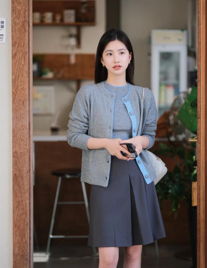 灰粉的配色真的是百看不膩啊,淺淺的粉色中和掉灰色帶來的沉悶感,讓整體變得既甜美又氣質,韓系的氛圍感直接拉滿,這樣的裝扮很適合約會、逛街和通勤,在外面拍照也是很上鏡的。