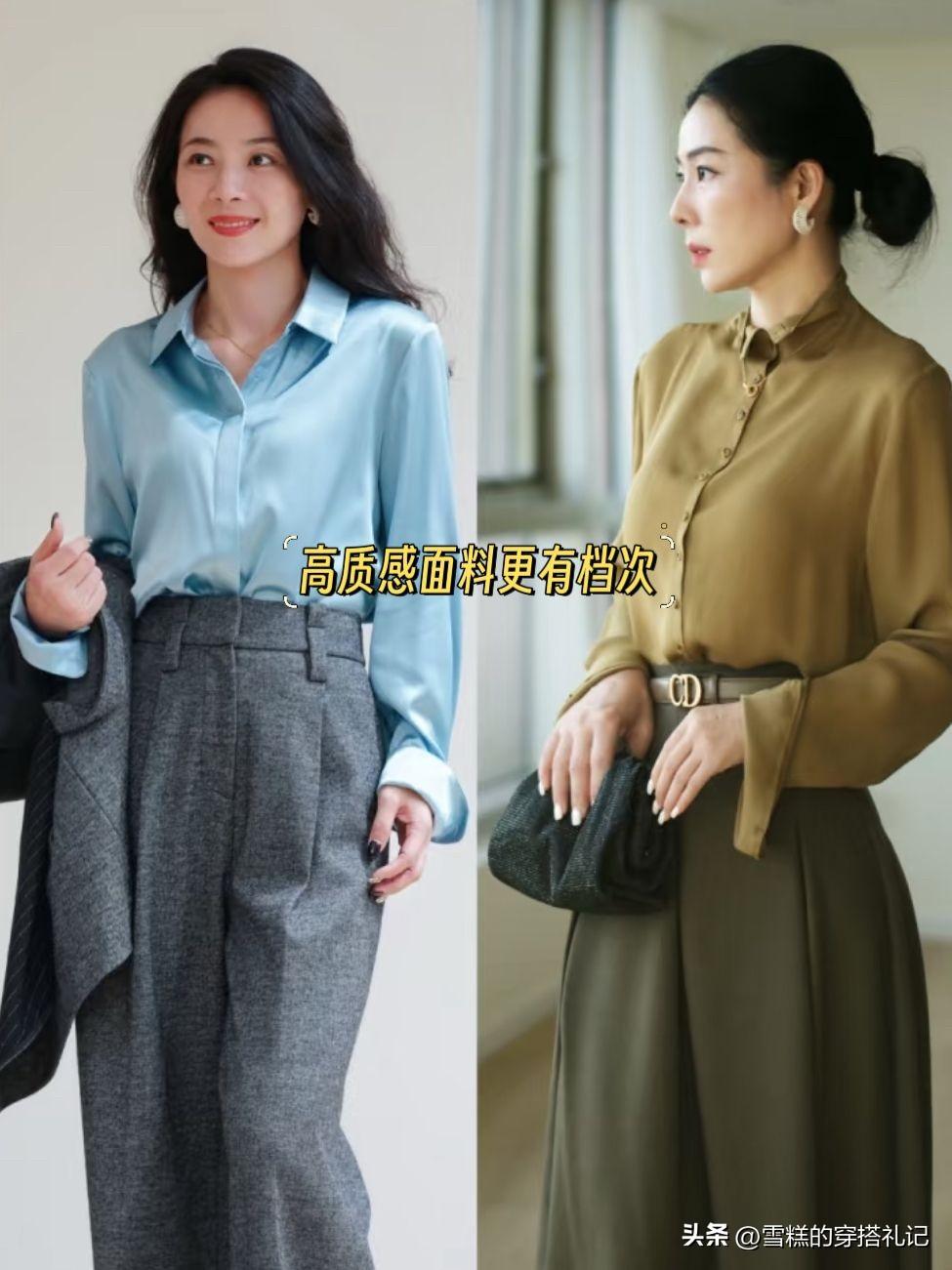 相比之下,中年女人更適合穿優質的料子,例如真絲、亞麻、精梳棉、絲絨等等,不僅可以維持高級感,還能提升造型的美觀性,跟個人氣質相得益彰。