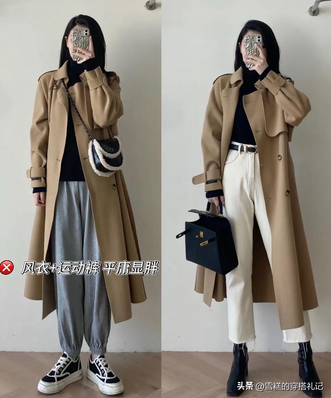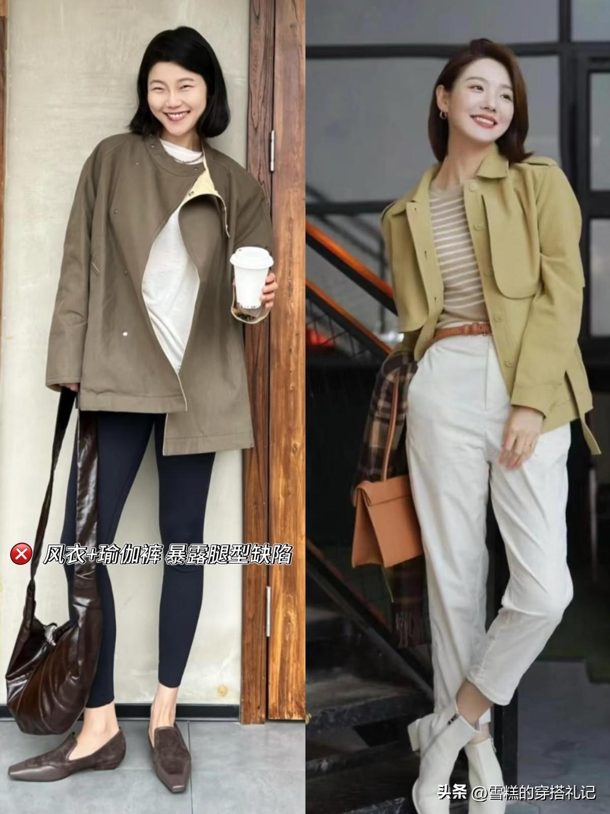 前幾年爆火的瑜伽褲,相信很多人都買過,入秋之後,就有不少人穿風衣喜歡配瑜伽褲,這2種單品完全就不在一條水平線上,而且緊繃感十足的瑜伽褲,還很容易暴露腿型缺陷。