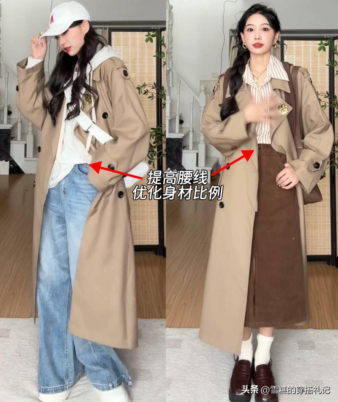 風衣越短,越挑剔身材,長度適中的風衣,不僅可以藏住身材短板,還能穿出顯高的效果,避開拖沓感的同時,又能巧妙的提升氣場。