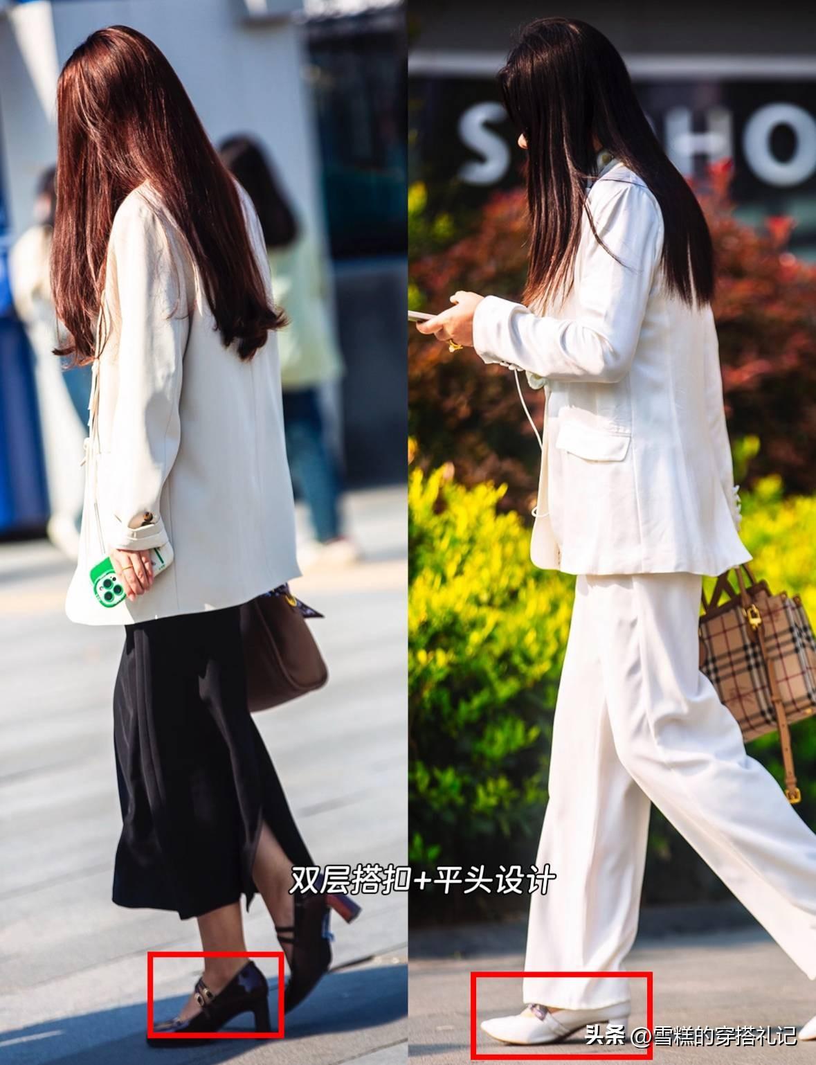 選擇遮臀長度的寬鬆西裝,搭配垂感比較好的長褲長裙,再拎款大容量手提包,踩雙低跟款式的雙層搭扣瑪麗珍鞋,能夠讓你秒變“職場麗人”。