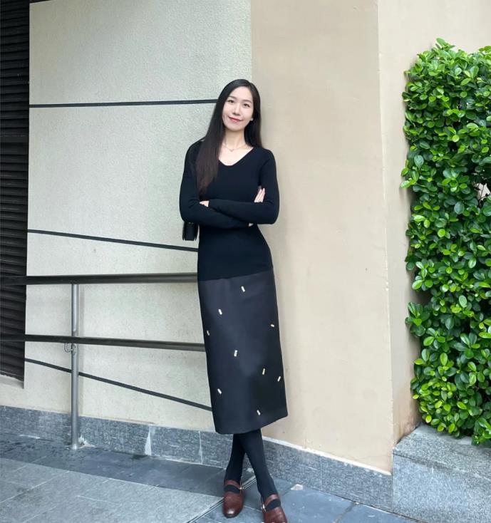今年秋天爆火的棕色鞋子,又怎能少得了瑪麗珍鞋呢?當黑色與之相配時,就是很顯優雅和氣質。黑色針織衫+黑色釘珠半身裙,整體看起來就很顯瘦,選擇一雙棕色瑪麗珍鞋來配,知性又優雅,拍照非常上鏡的裝扮。