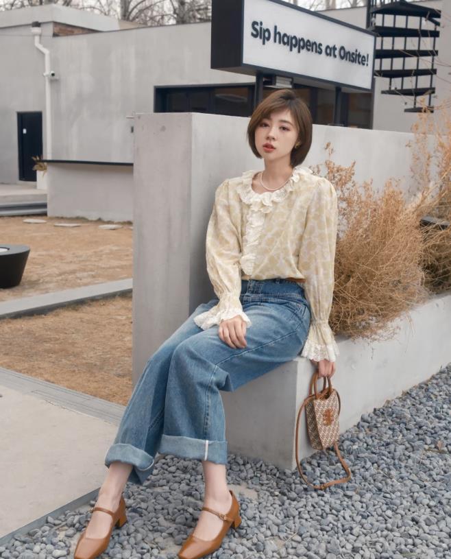 秋日的穿搭,該是溫柔和氣質的,一雙棕色的瑪麗珍單鞋正好可以滿足,一字帶設計加上小粗跟,穿起來後把雙腿雙腳都襯得很細很長,搭配寬鬆的牛仔褲也是沒有違和感,如果是過長的款式,記得要稍微挽起來一些,露出腳踝,上衣選擇一件法式襯衫,這也太氣質了吧!