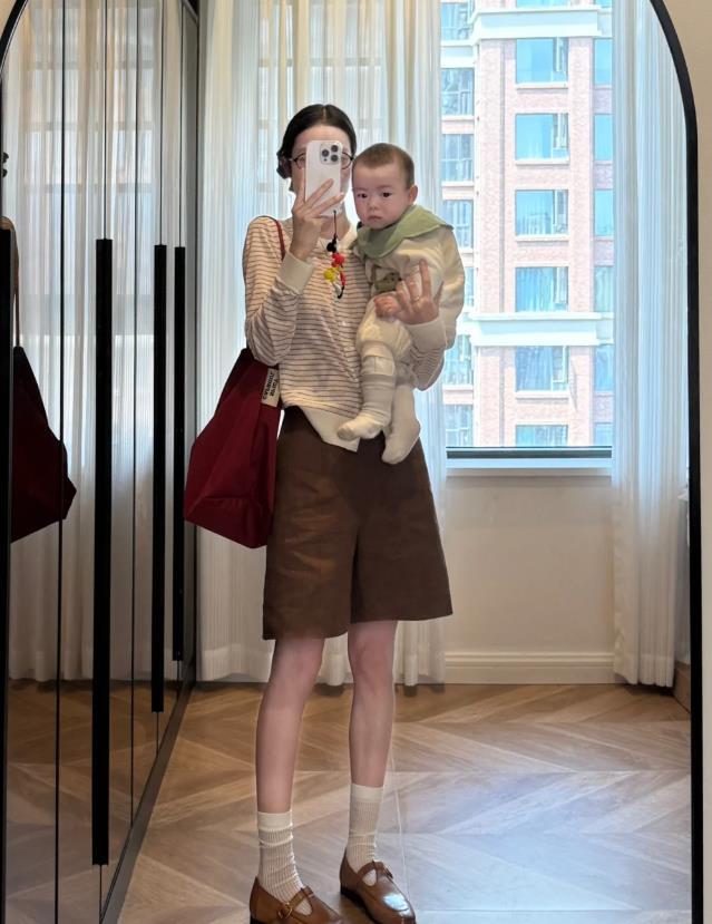 即便是成爲了媽媽,也要漂漂亮亮每一天啊,這一身穿搭真的是辣媽風十足,棕色系簡直太適合秋天了,關鍵是整體的配色很漂亮,不管是啥場合都合適,棕色的五分褲+條紋針織衫,夏末初秋這樣穿就很不錯,腳下配的棕色芭蕾鞋,恰到好處與褲子進行了呼應,很好看時髦。