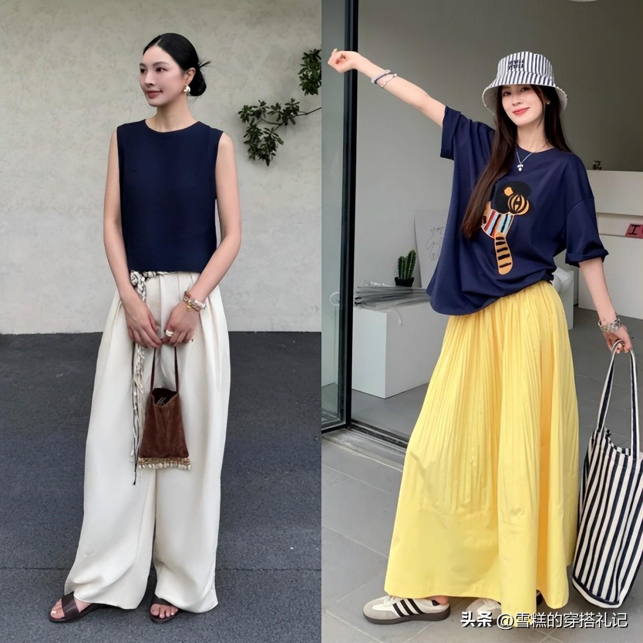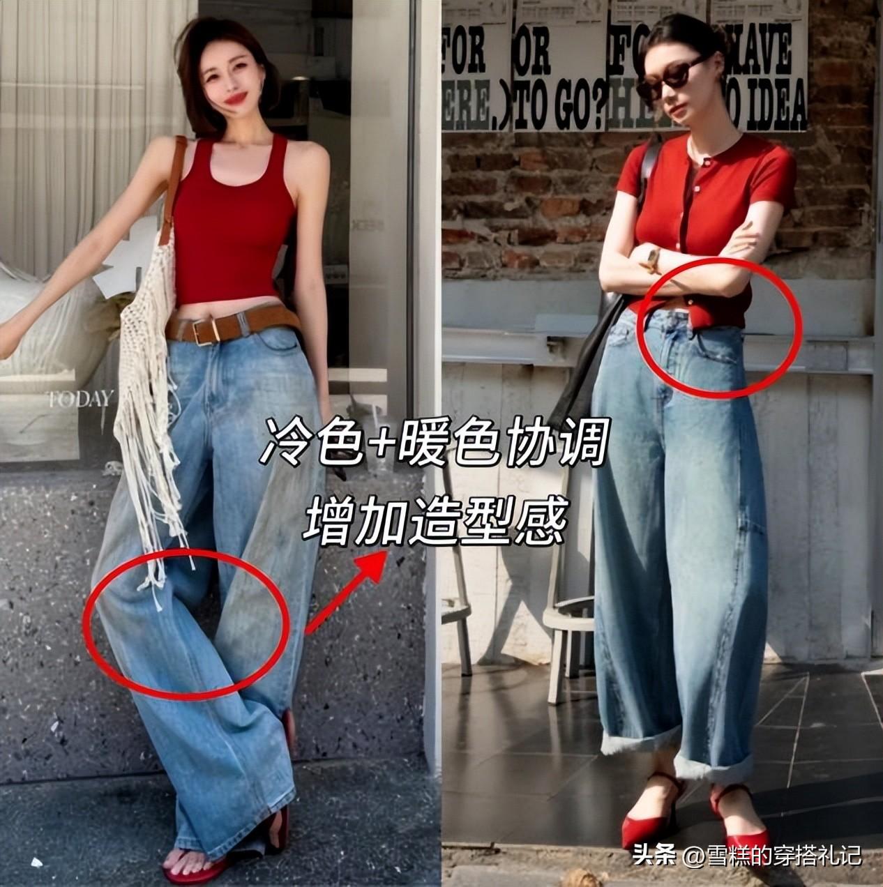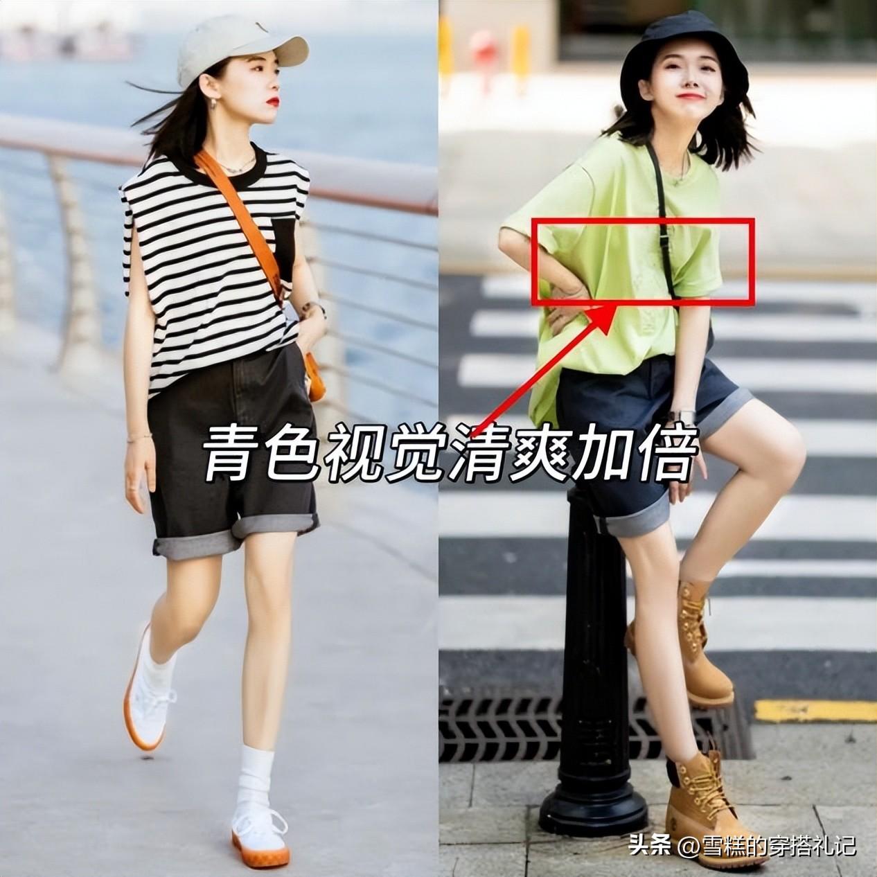 爲什麼強調全身的冷暖色?大家可以多試試一個冷色+一個暖色的協調,比如大家在穿藍色的服裝的時候,尤其放在上半身的位置,瞬間降低了悶熱感,穿起來超級顯白,在結合暖色進行協調,幫助你更好的穿出高級感,比如綠色+棕色、藍色+卡其色、粉色+藍色等等,自然的提亮膚色,瞬間顯白N倍。而且上衣可以以冷色調爲主,搭配暖色調的圖案或者花邊、logo,和下半身的主色進行協調,提亮膚色的效果賊牛!