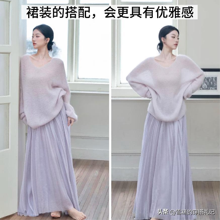 紫色調的系列單品想要凸顯出非常明顯的溫柔和優雅感的話,那麼單品的選擇就是比較關鍵的點了,推薦大家可以首選具有氣質的裙裝系列,尤其是像溫柔優雅的長裙、醋酸裙這一類。