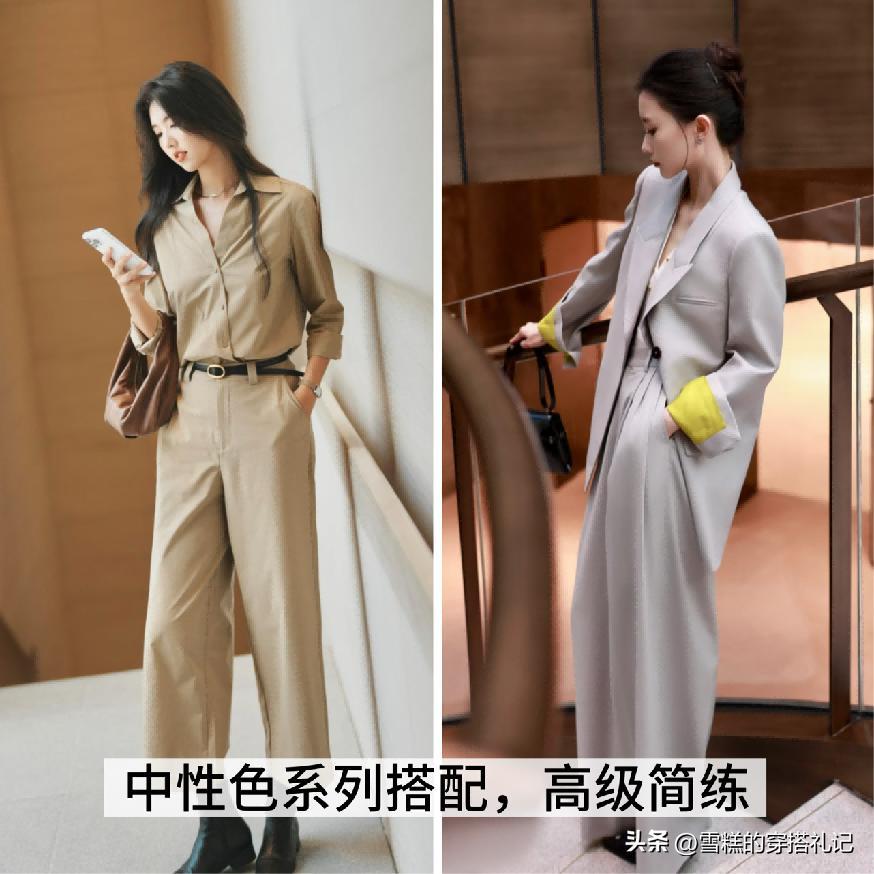 而且要搭配中性色系列的單品,其實有一個非常重要的標準,就是整體的款式走向,儘量選擇設計比較簡練,而且剪裁比較具有優質的類型,搭配起來的時候對於我們身材狀態的穩定度比較高,而且自帶着非常明顯的修飾效果,尤其是對於身形比較微胖或者是線條走向不太好看的女性來說,這樣的款式搭配會更加的具有契合度以及修飾優勢。