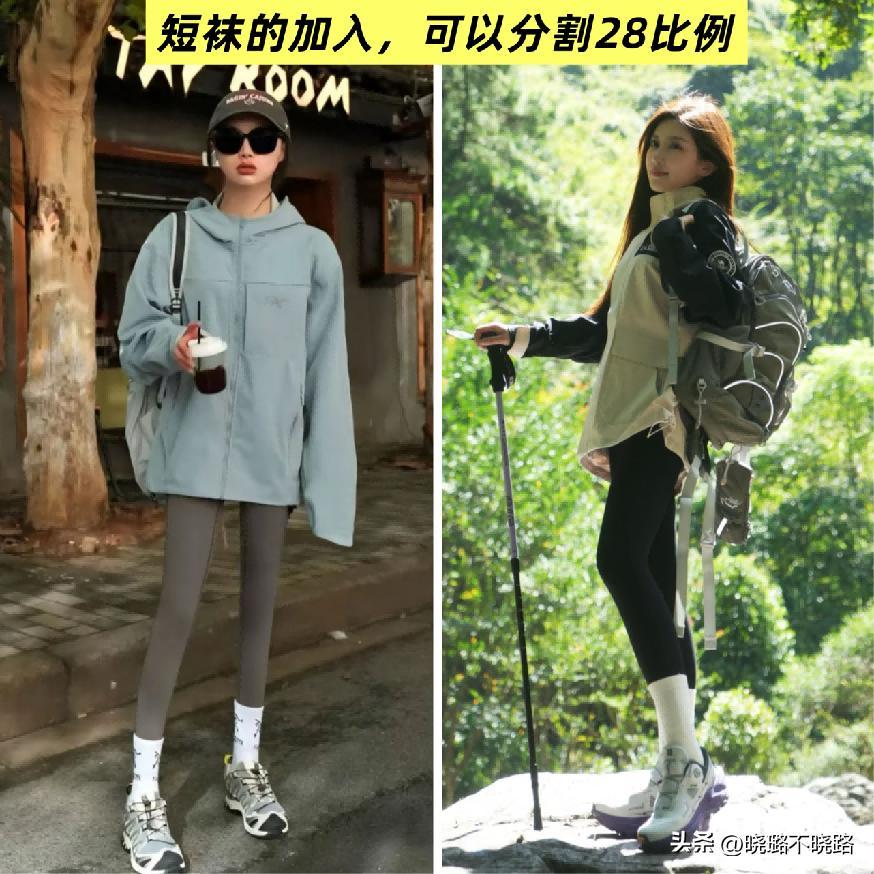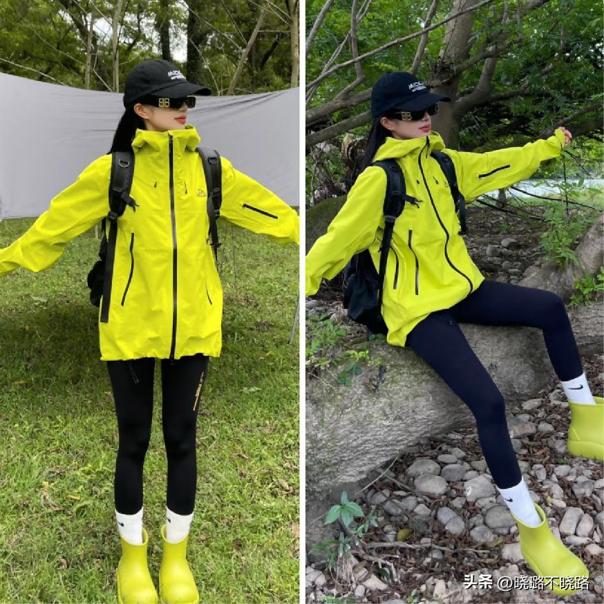 今年非常流行的戶外穿搭衝鋒衣和瑜伽褲的組合就是很經典的存在,組合之外,其他的單品像溯溪鞋鞋又或者是戶外適合搭配的一些時髦感的帽子以及其他的配飾都可以加入其中。