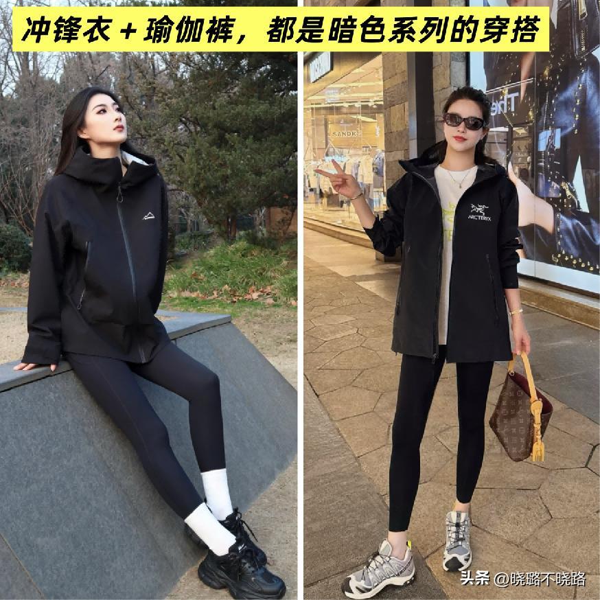 下方就已經整理出來了喲,快來看看衝鋒衣和瑜伽褲的搭配有多麼的好看又時髦吧。