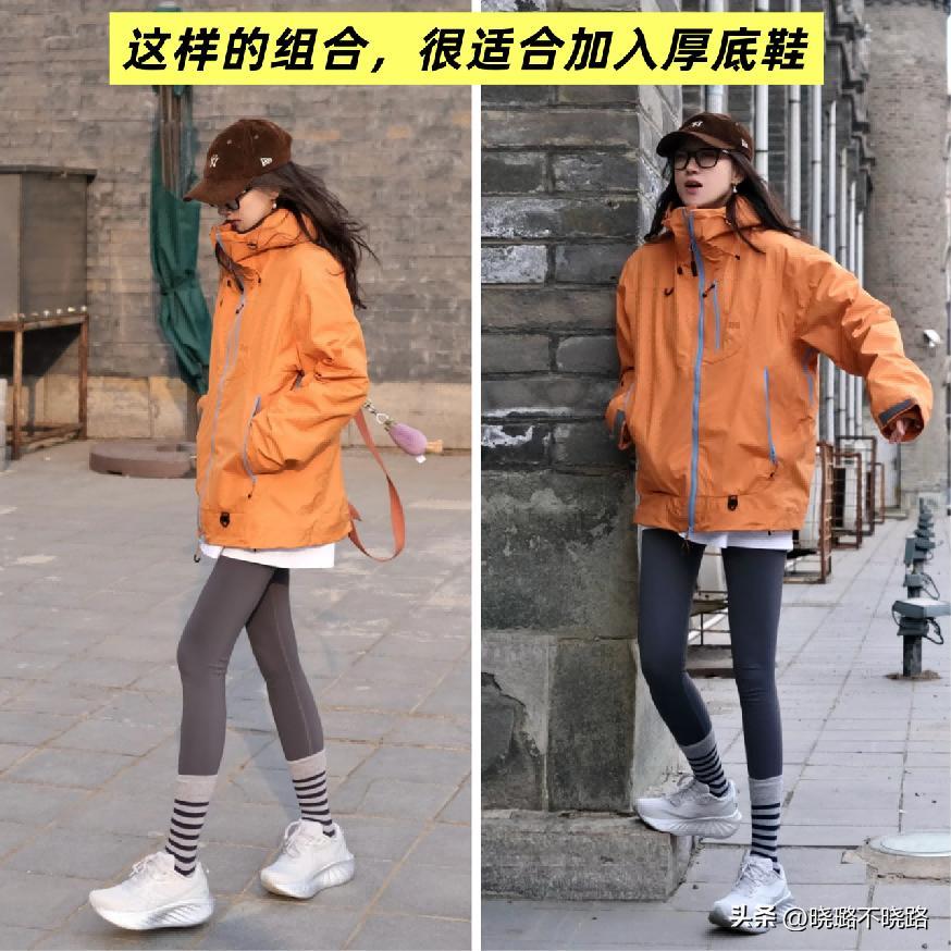 像衝鋒衣和瑜伽褲的組合,其實在秋季當中的時候就真的非常適合運用彩色系列的衝鋒衣,結合黑色或者深灰色,這樣的瑜伽褲整體視覺上的層次感非常明顯,最主要的是這樣的穿搭真的很減齡顯年輕。