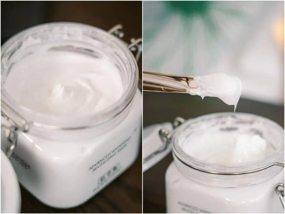 它很水潤,也很好清洗、不拔幹、不刺痛。這個白泥比別的泥膜更潤,主要原因是它裏面含有 20% 以上的油性成分——能夠軟化角質、疏通毛孔,敷完臉都是潤滑的,一點都不緊繃。