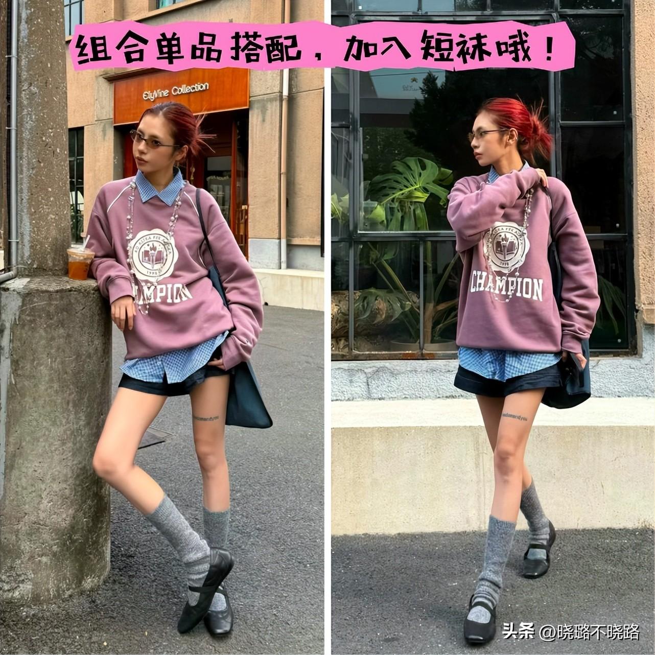 ① 寬鬆的上衣+黑絲,結合短襪or短靴