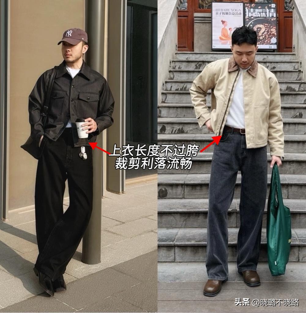 中年男人挑選短上衣時,長度可以在胯部位置,但是一定不能過胯,控制在胯部和臀部之間,無論是裹上穿還是敞開穿,都能很好的壓縮上身比例。
